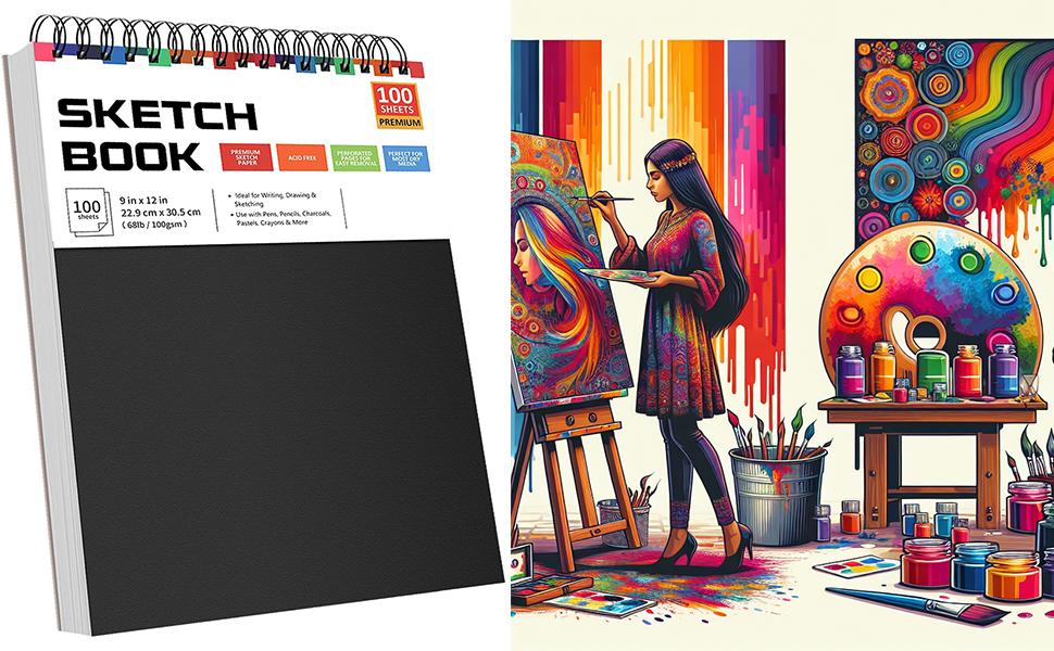 This sketchbook is crafted with high-quality sketch paper, it offers a premium surface that compliments pencils, charcoal, and other dry media, providing a rich texture to capture the nuances of your shading and lines.