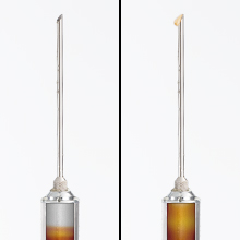 Reverse the tube so that the needle is facing up and gently tap the tube so that the seasoning is on the bottom and the air runs to the top. Gently push the handle, so that the top of the air out of the tube first, when you see a small amount of seasoning spilled at the tip of the needle can start to use.