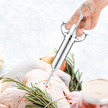 Life becomes wonderful after using our marinade injector! Instead of marinating directly, put the seasoning into our syringe, and then inject the