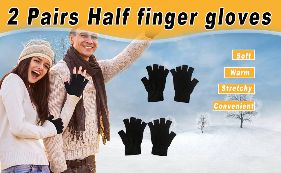 Stay warm and comfortable with these half-finger gloves made of high-quality acrylic material. The breathable fabric ensures a cozy fit without causing itchiness. The stretchy design accommodates most hand sizes, allowing flexibility for activities like texting, typing, writing, biking, running, and driving. Each pack includes two pairs of black knit gloves, making them a practical choice for daily use or as a thoughtful gift.