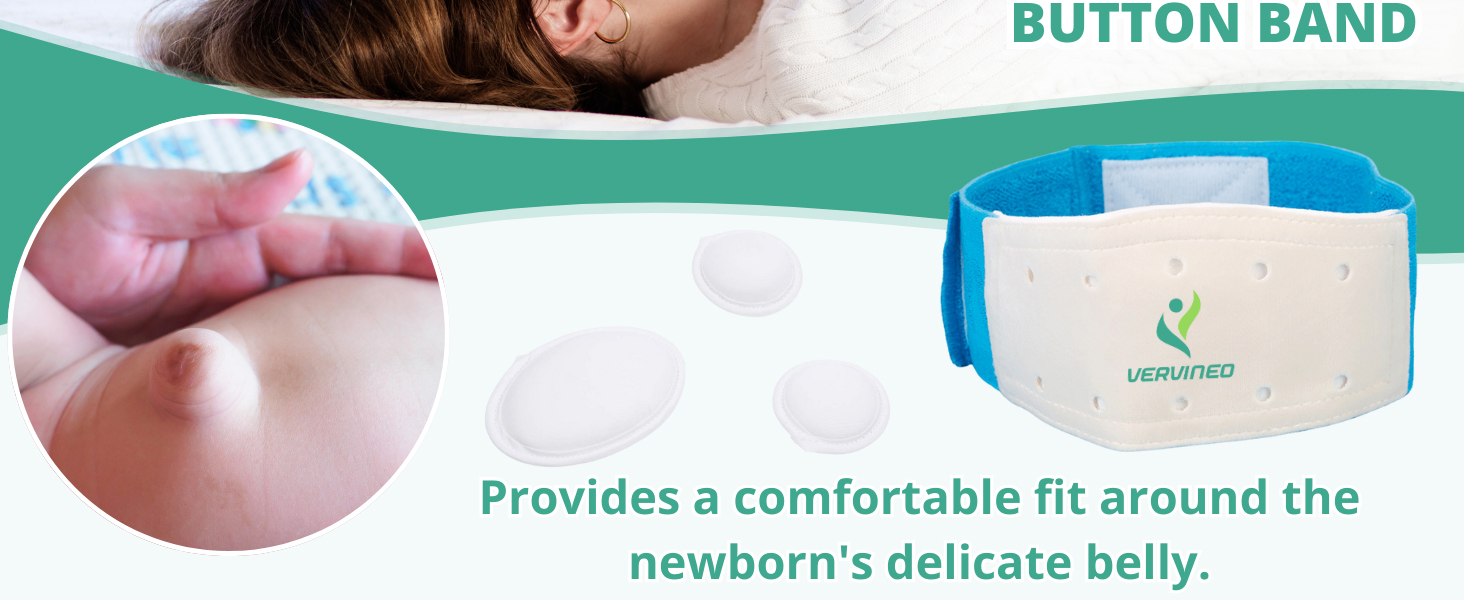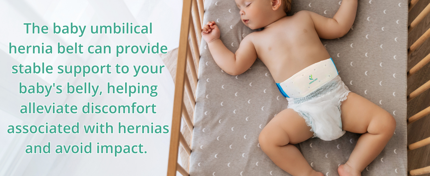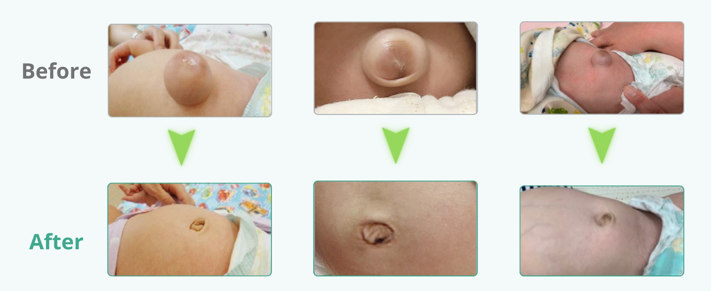 The band provides gentle pressure to help the hernia retract naturally into the navel, typically within a few weeks of consistent use.