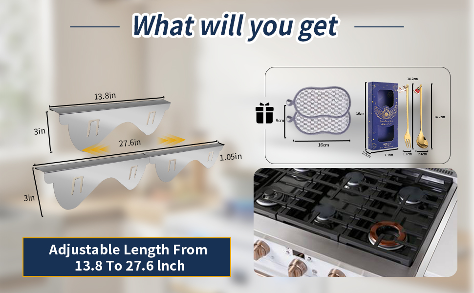 You will receive 2 complete stove gap covers. Each cover is uniquely made from two sliding parts for a perfect custom fit, meaning your package will contain 4 component pieces in total.