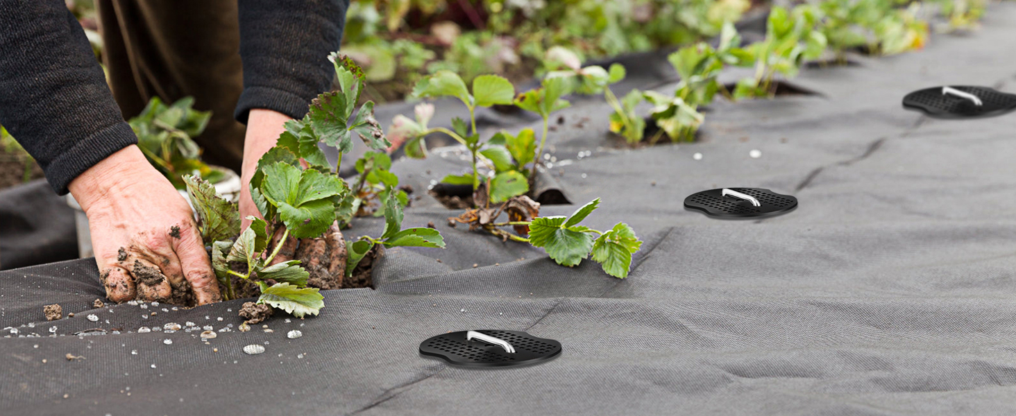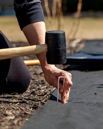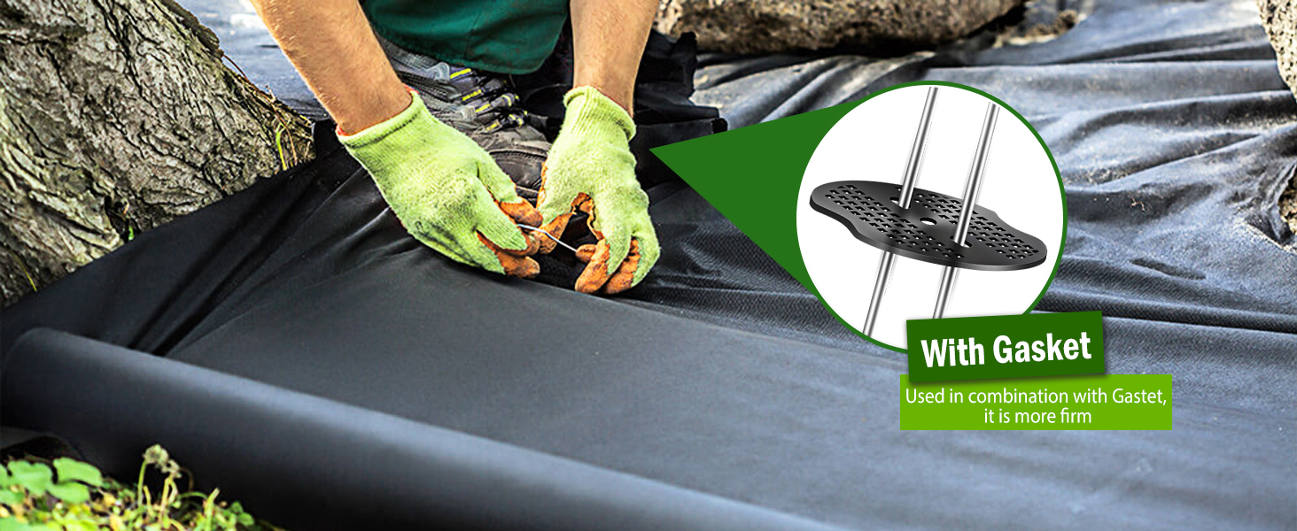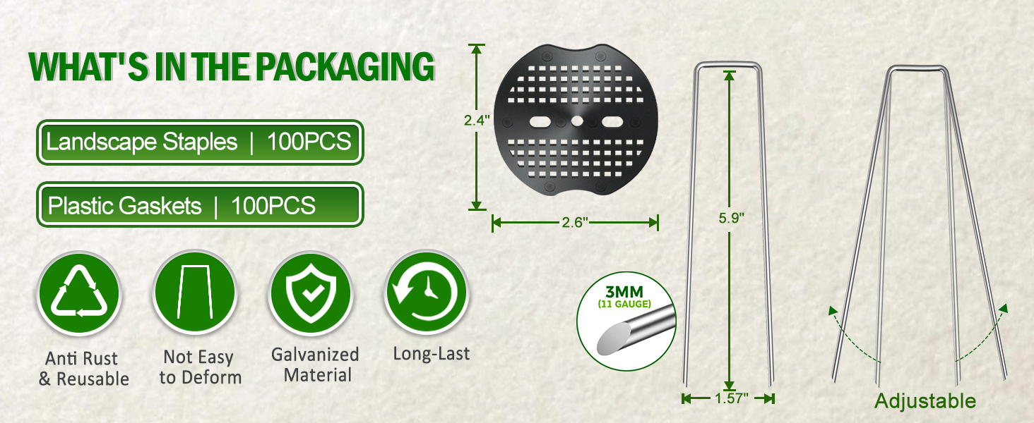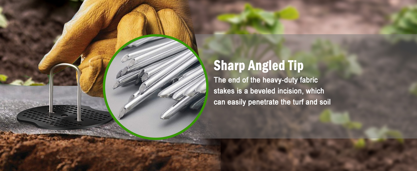 Holds down landscape fabric, dog fences, sod, erosion control fabrics, weed barriers