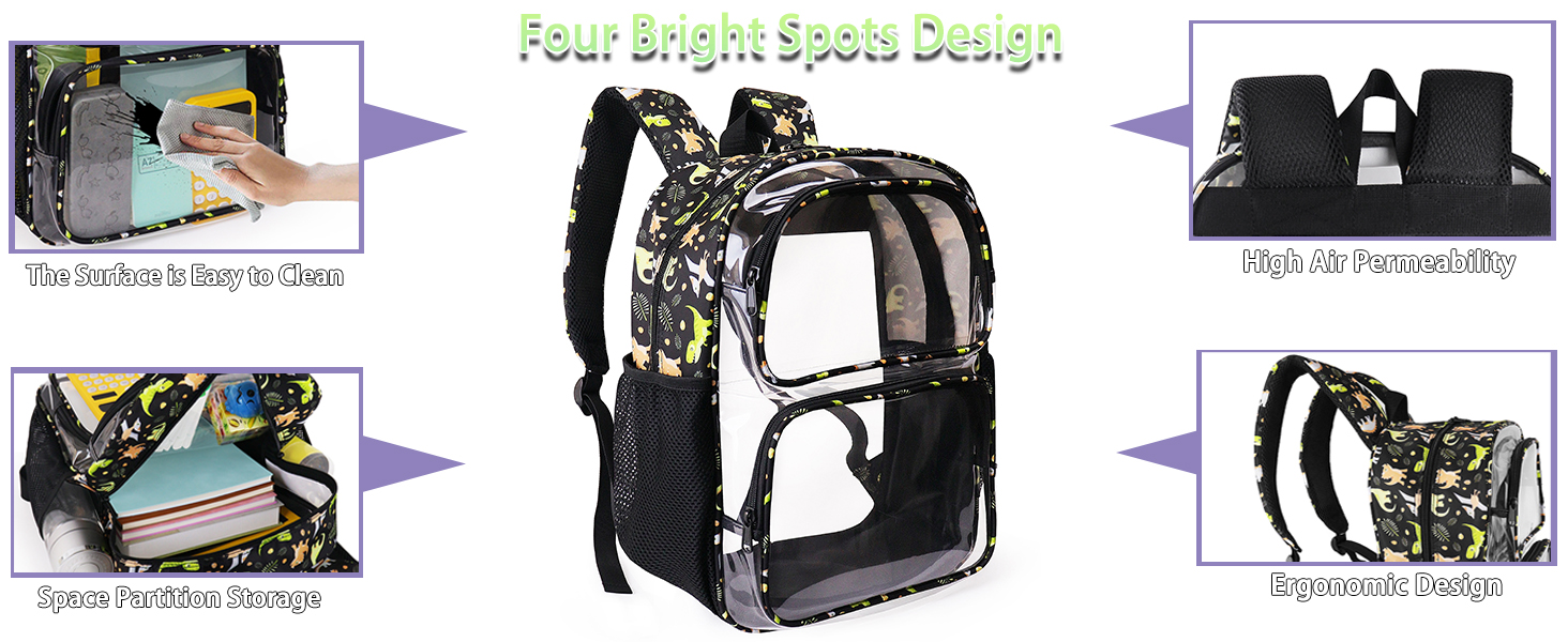 In order to make the see through backpack more heavy duty, each strap is designed wider than usual and padded for comfort