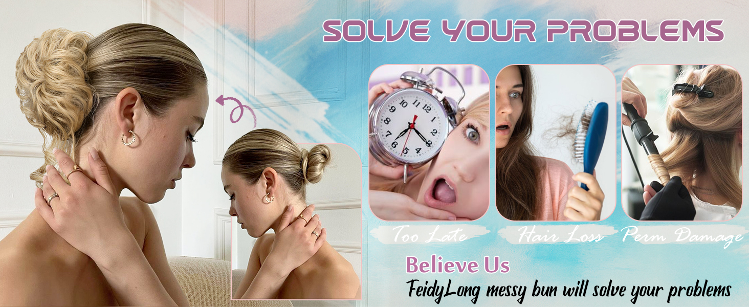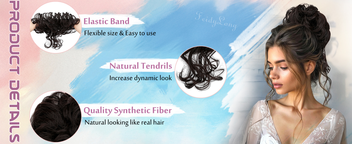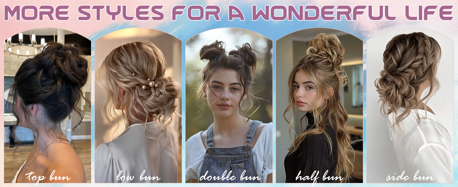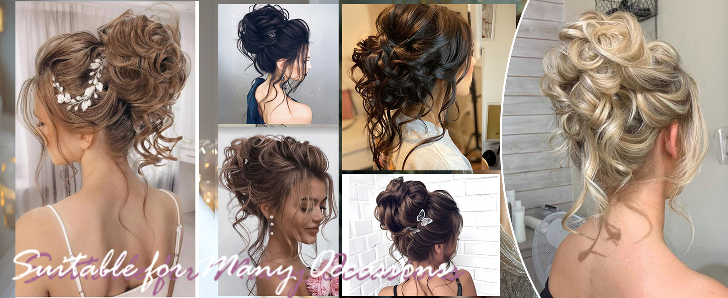 Add a touch of charm to your hairstyle with our messy buns! Experiment with different looks and easily create playful, elegant styles for any occasion.