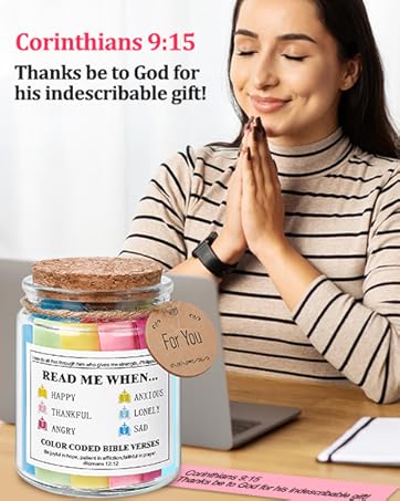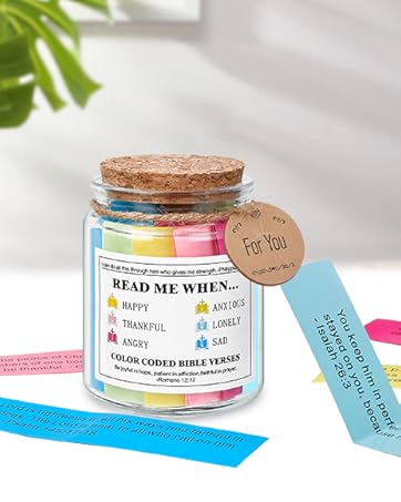 Happy, Sad, Anxious, Grateful, Angry, Lonely, when you feel any of these emotions, open Bible verse jar and take a sticky note, the color coded verses on the sticky note match the areas that need to be motivated, read it for daily encouragement!
