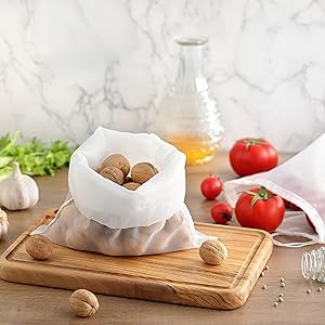 Crafted from a super-fine nylon mesh, these yogurt strainer bags effectively filter out even the smallest nut particles, pulp, and sediment. Whether you’re straining homemade nut milk, cold brew coffee, Greek yogurt, tea, or fresh juice, the nut bag strainer silky-smooth textures every time—no gritty residue or clogging.