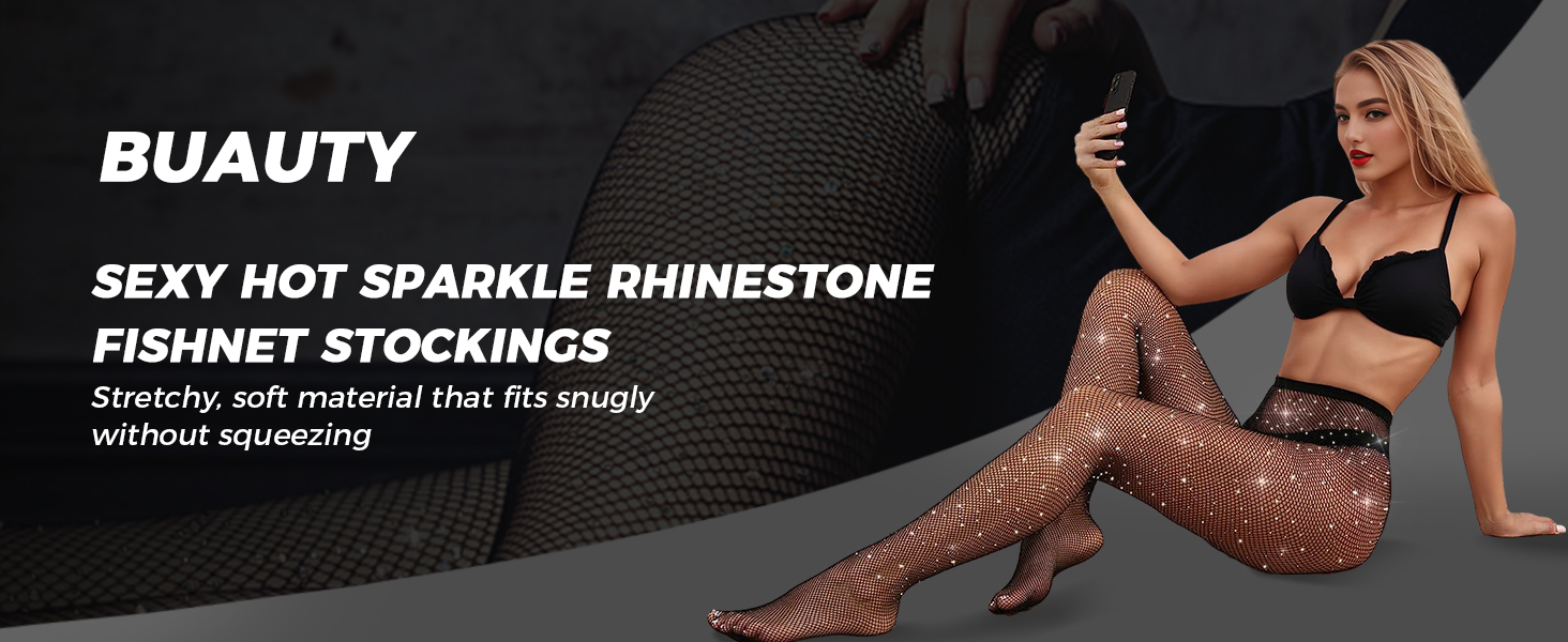 Bedazzled fishnets shimmer with every step, elongating legs to perfection. Your spotlight moment awaits – from festivals to street style, all eyes on you!